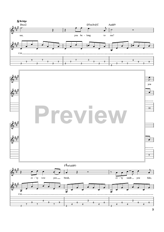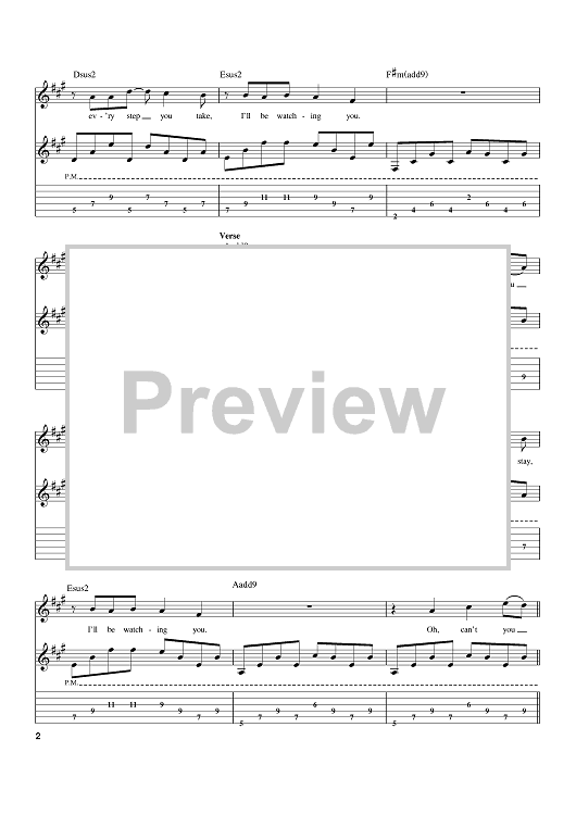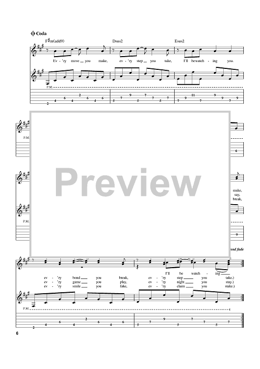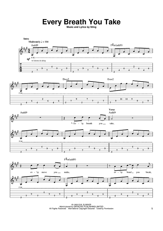 Digital Sheet Music for Every Breath You Take by Sting, The Police scored for Guitar Tab; id:374222