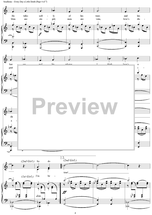 Digital Sheet Music for Every Day a Little Death by Stephen Sondheim scored for Piano/Vocal; id:120347