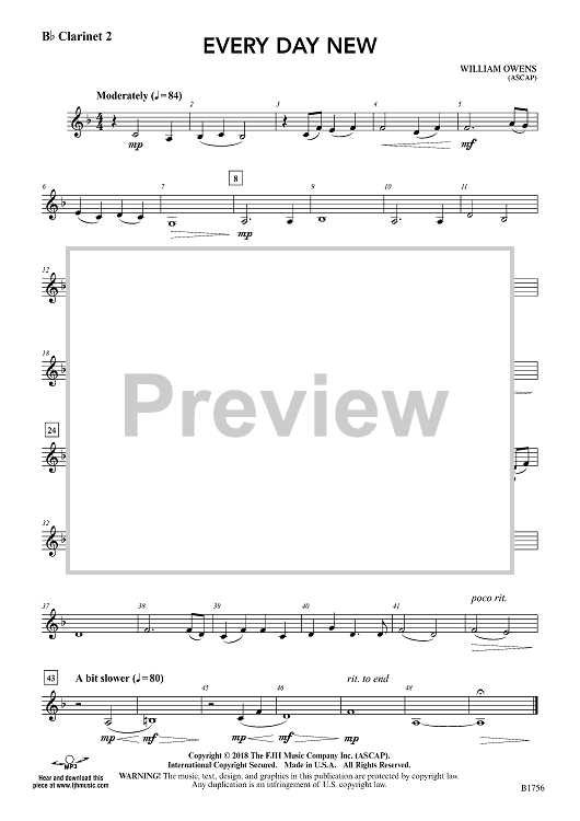 "Every Day New - Bb Clarinet 2" Sheet Music by William Owens