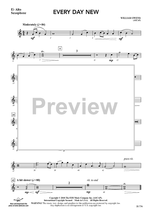 "Every Day New - Eb Alto Sax" Sheet Music by William Owens