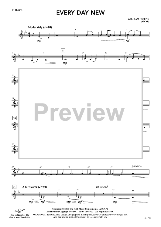 Digital Sheet Music for Every Day New - F Horn by William Owens scored for Concert Band; id:500878