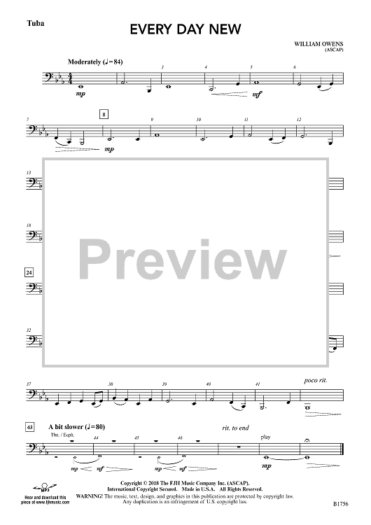 Digital Sheet Music for Every Day New - Tuba by William Owens scored for Concert Band; id:500882