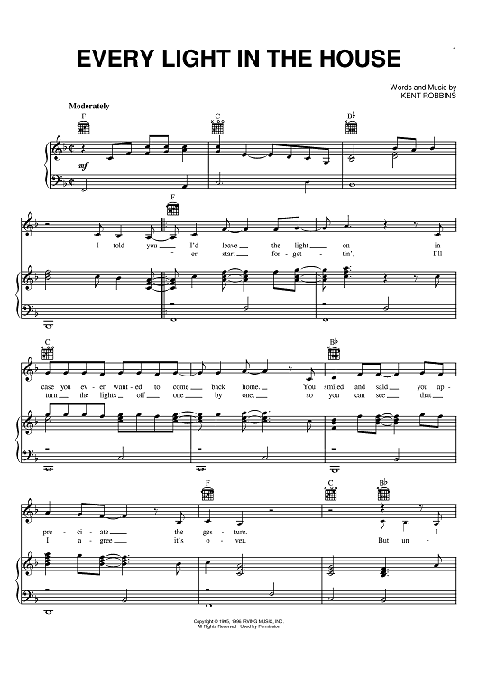 Digital Sheet Music for Every Light In The House by Trace Adkins, Kent Robbins scored for Piano/Vocal/Chords; id:385798