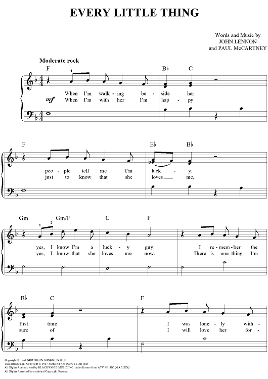 Digital Sheet Music for Every Little Thing by Paul McCartney, The Beatles, John Lennon scored for Easy Piano/Vocal/Chords; id:449552
