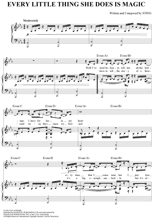 Digital Sheet Music for Every Little Thing She Does Is Magic by Sting, The Police scored for Piano/Vocal/Chords; id:259180