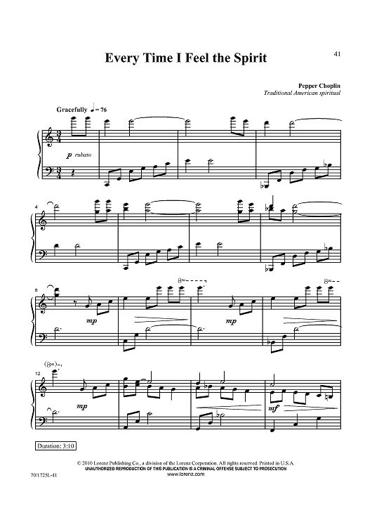 Digital Sheet Music for Every Time I Feel the Spirit by Traditional American Spiritual, Pepper Choplin scored for Piano Solo; id:433634
