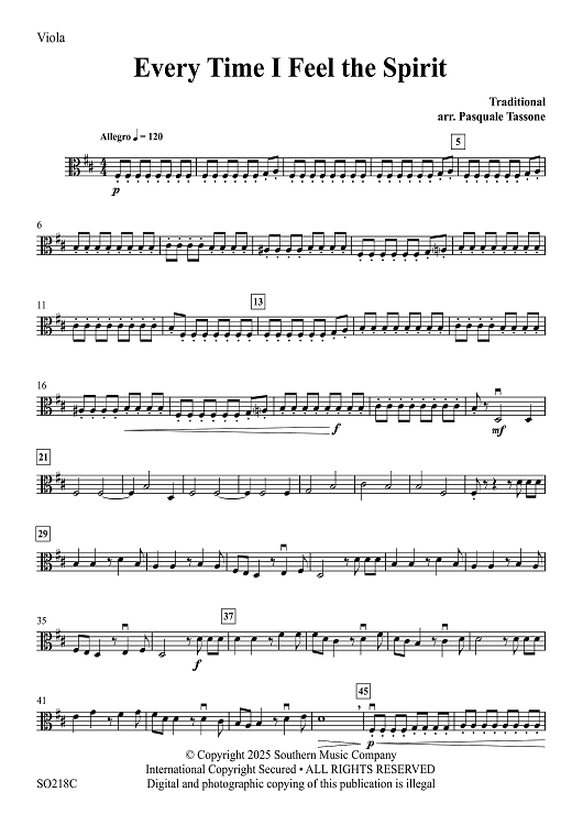 "Every Time I Feel the Spirit - Viola" Sheet Music by Traditional
