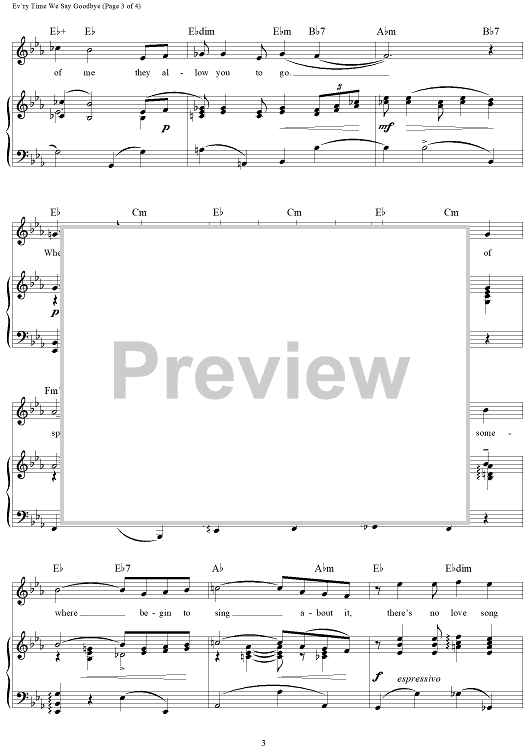 Digital Sheet Music for Every Time We Say Goodbye by Cole Porter scored for Piano/Vocal/Chords; id:289762