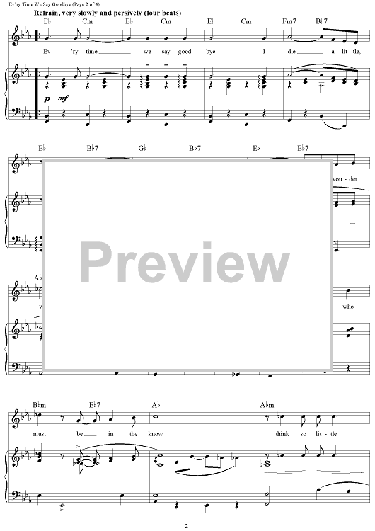 "Every Time We Say Goodbye" Sheet Music by Cole Porter