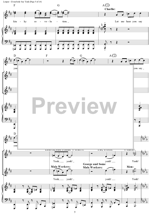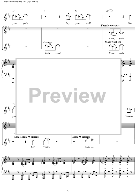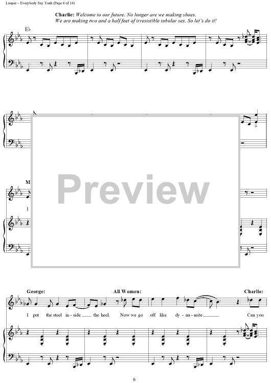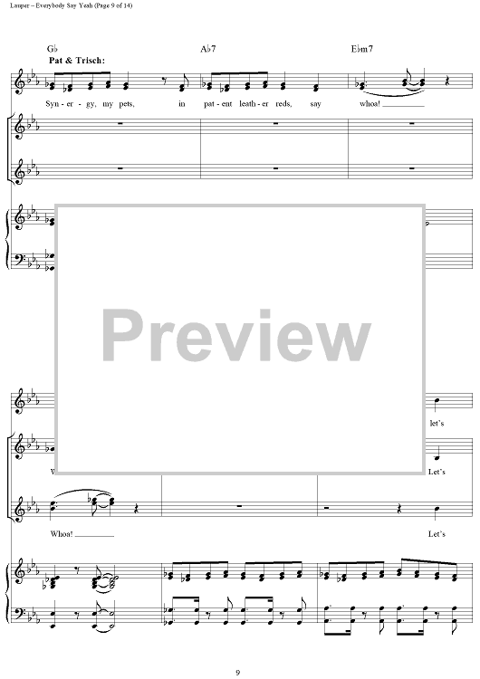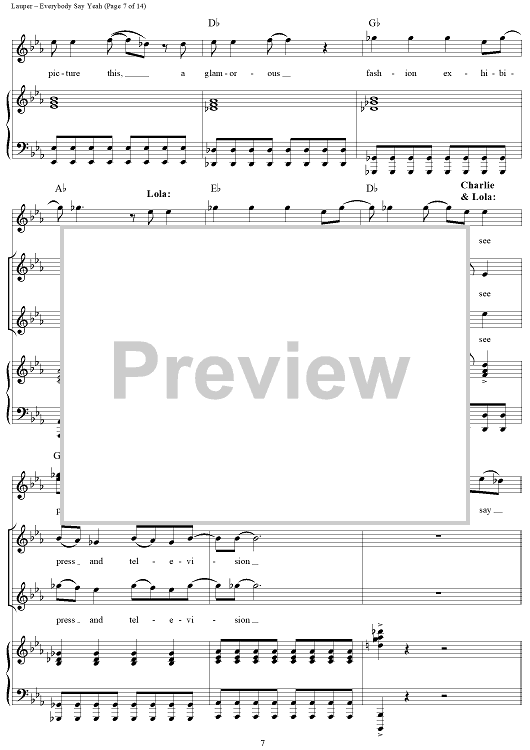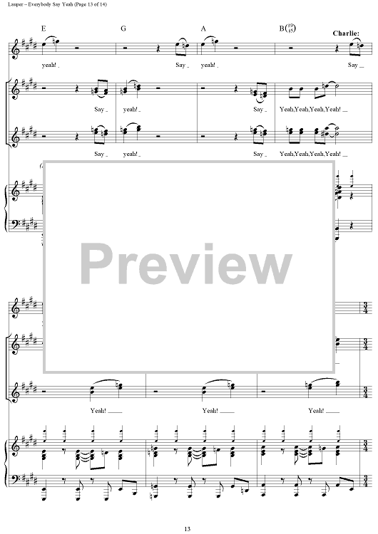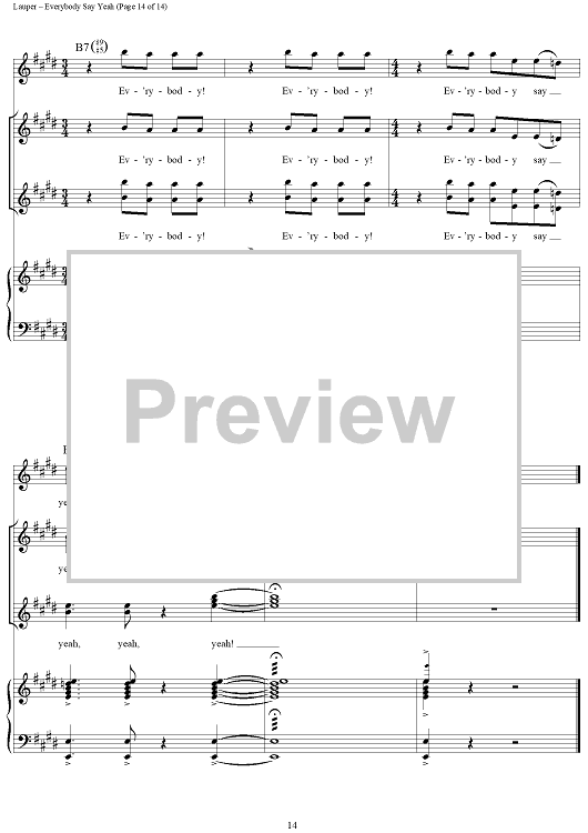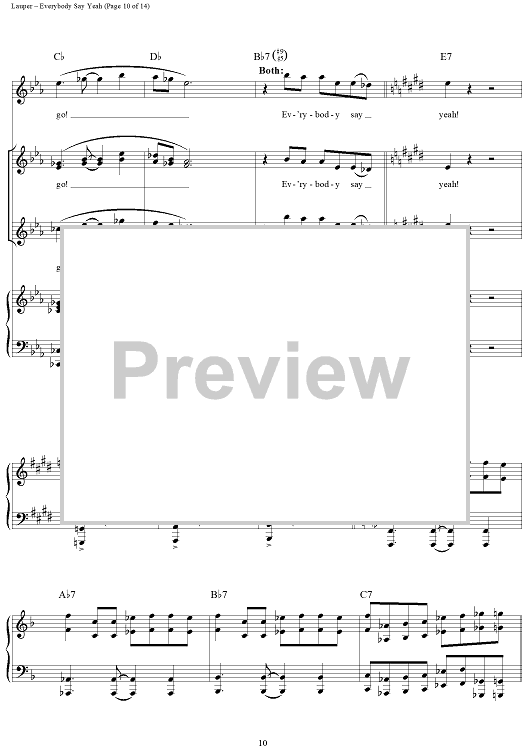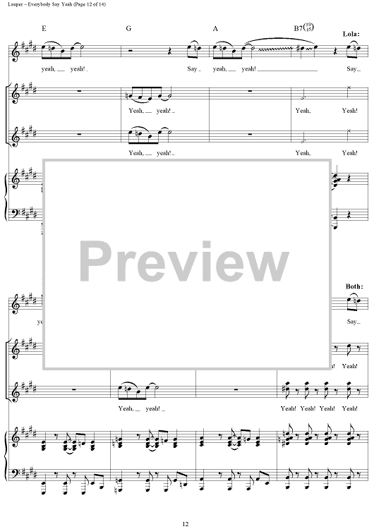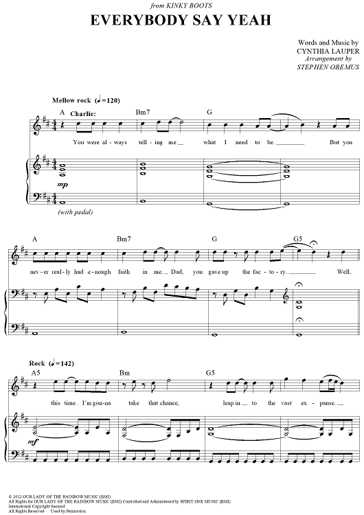 Digital Sheet Music for Everybody Say Yeah by Cyndi Lauper, Stephen Oremus scored for Piano/Vocal/Chords; id:436611