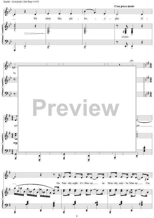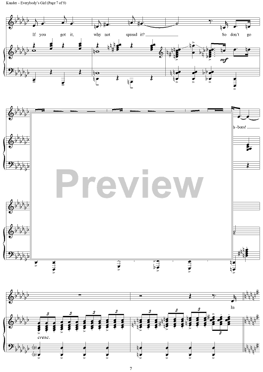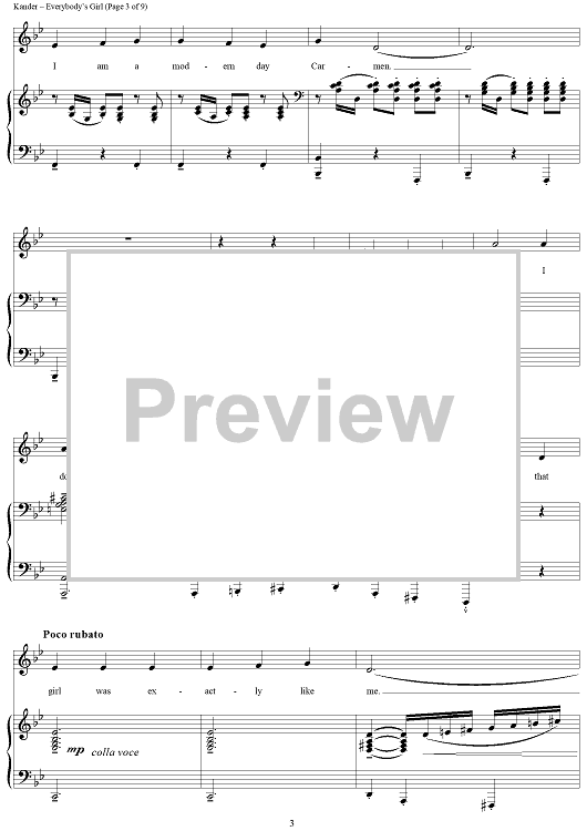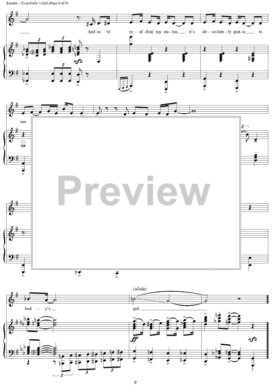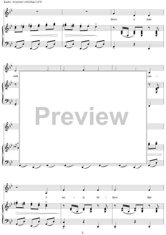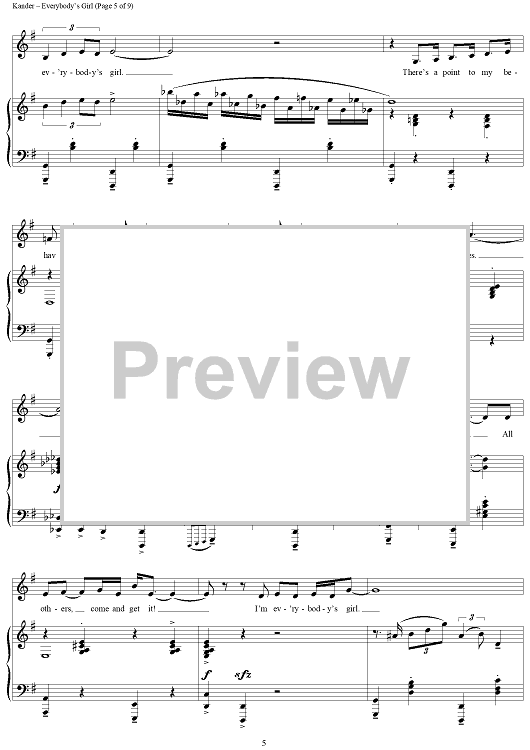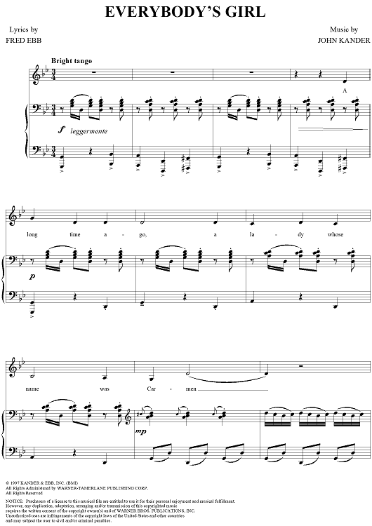 Digital Sheet Music for Everybody's Girl by John Kander, Fred Ebb scored for Piano/Vocal; id:286451