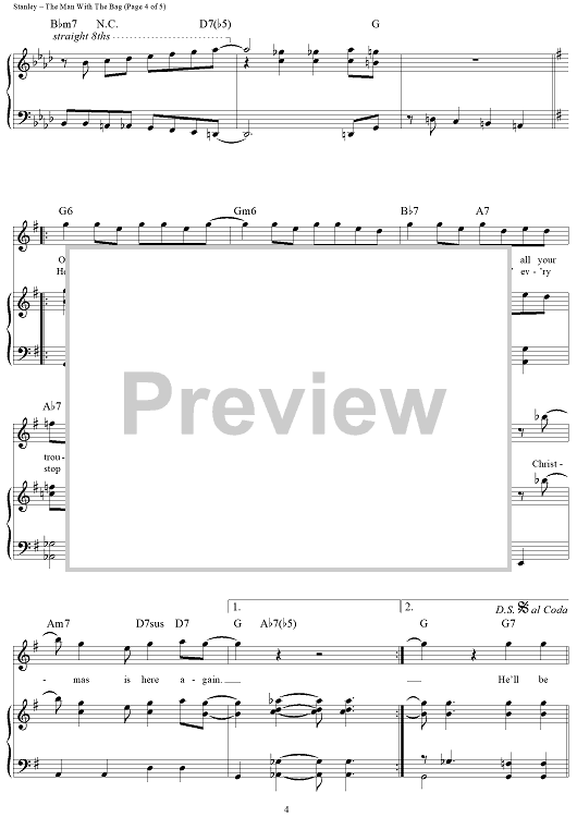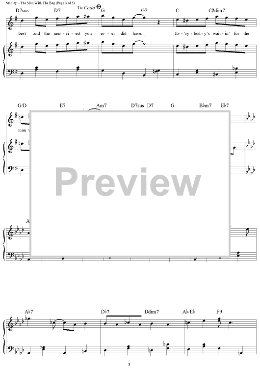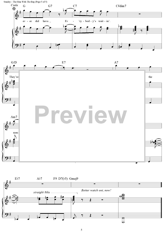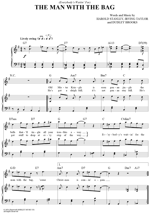 Digital Sheet Music for (Everybody's Waitin' For) The Man With The Bag by Irving Taylor, Kay Starr, Dudley Brooks, Brian Setzer, Harold Stanley scored for Piano/Vocal/Chords; id:385787