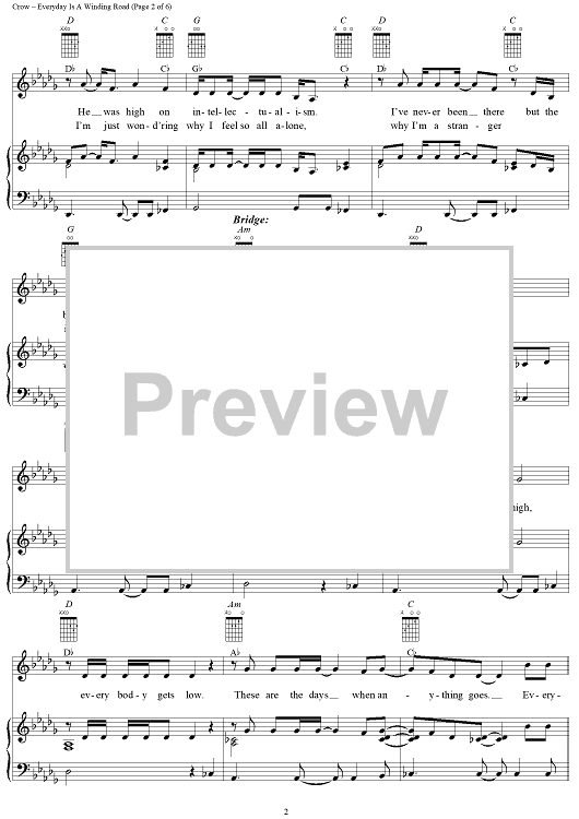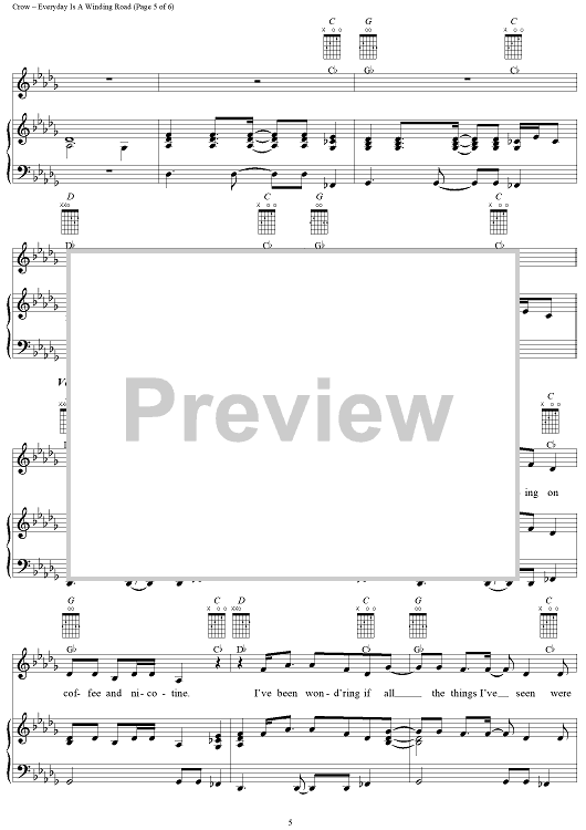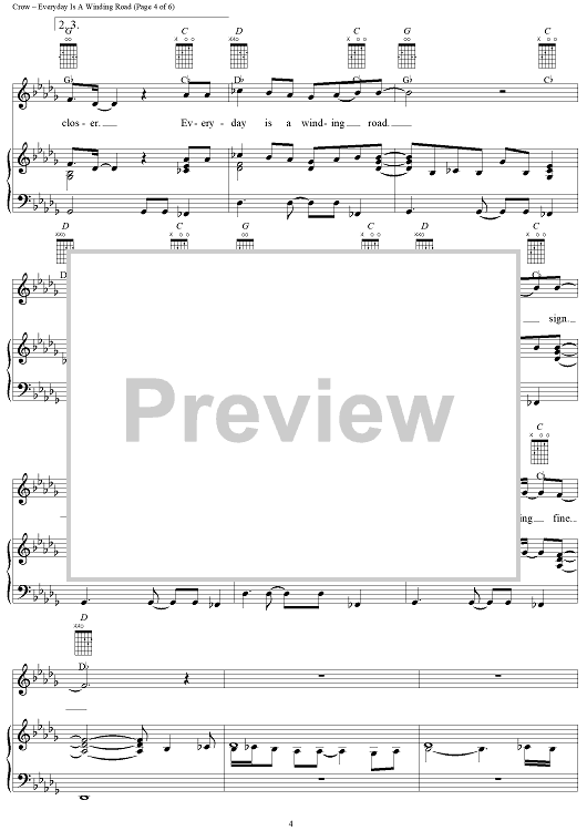 Digital Sheet Music for Everyday Is A Winding Road by Sheryl Crow, Brian MacLeod, Jeff Trott scored for Piano/Vocal/Chords; id:111684