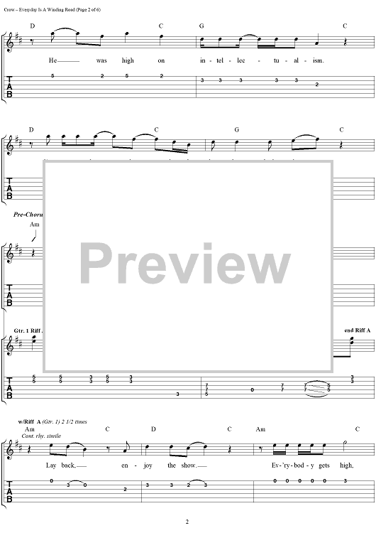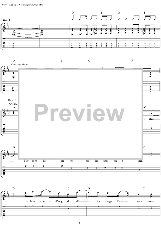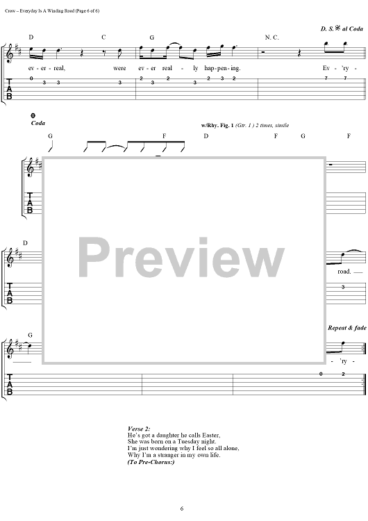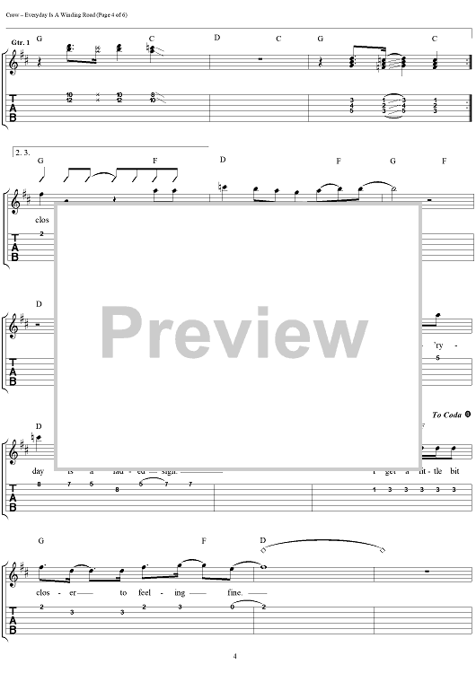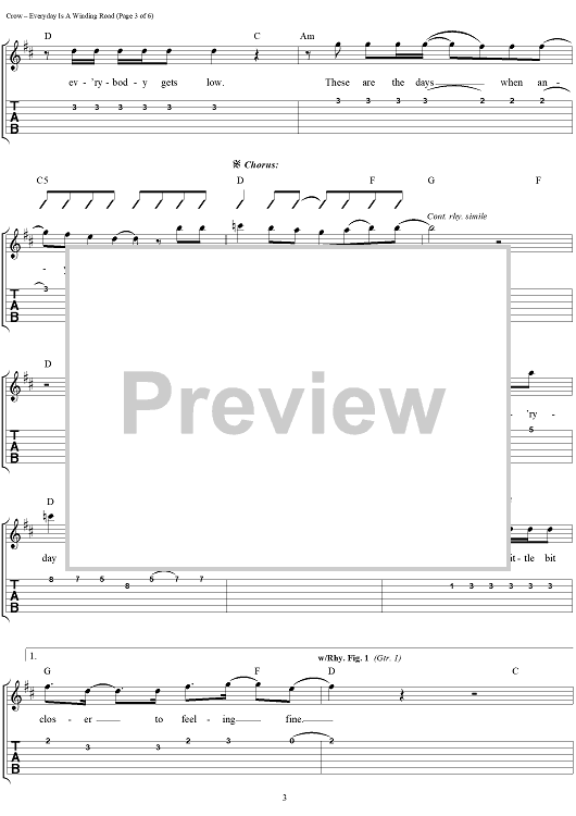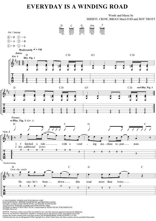 Digital Sheet Music for Everyday Is A Winding Road by Sheryl Crow, Brian MacLeod, Jeff Trott, Louis Martinez scored for Easy Guitar Tab/Vocal; id:271541