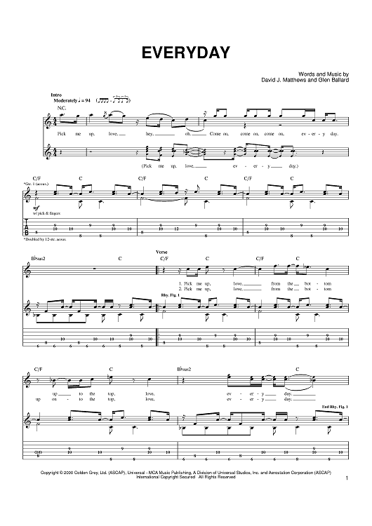 Digital Sheet Music for Everyday by Glen Ballard, Dave Matthews Band, Dave Matthews scored for Easy Guitar; id:374882