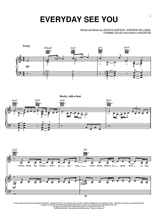 Digital Sheet Music for Everyday See You by Franne Golde, Jessica Simpson, Andrew Williams scored for Piano/Vocal/Chords; id:374745