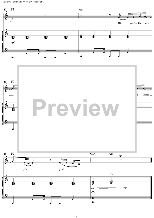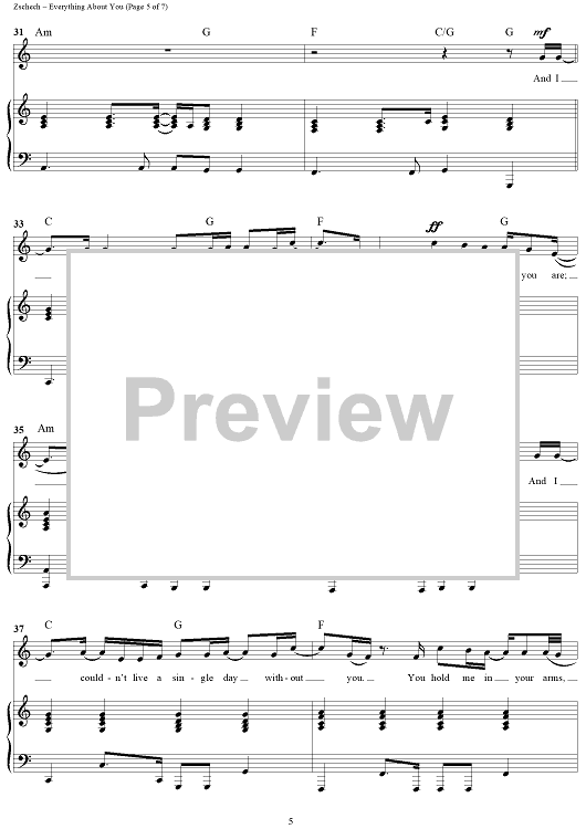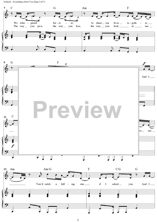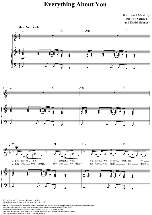 Digital Sheet Music for Everything About You by Darlene Zschech, David Holmes scored for Piano/Vocal/Chords; id:319101