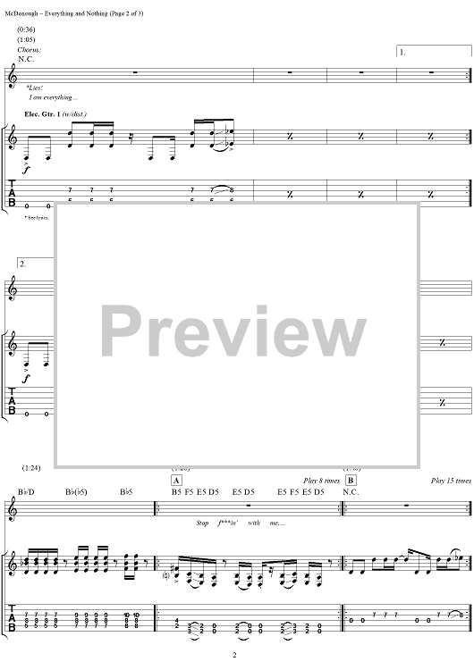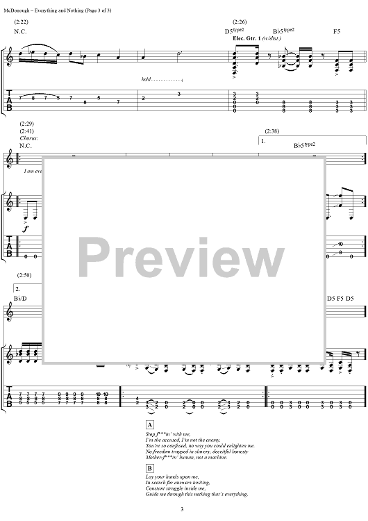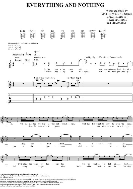 Digital Sheet Music for Everything and Nothing by Matthew McDonough, Gurrg, Ry-Know, Chad Gray, Mudvayne scored for Guitar Tab/Vocal; id:287907