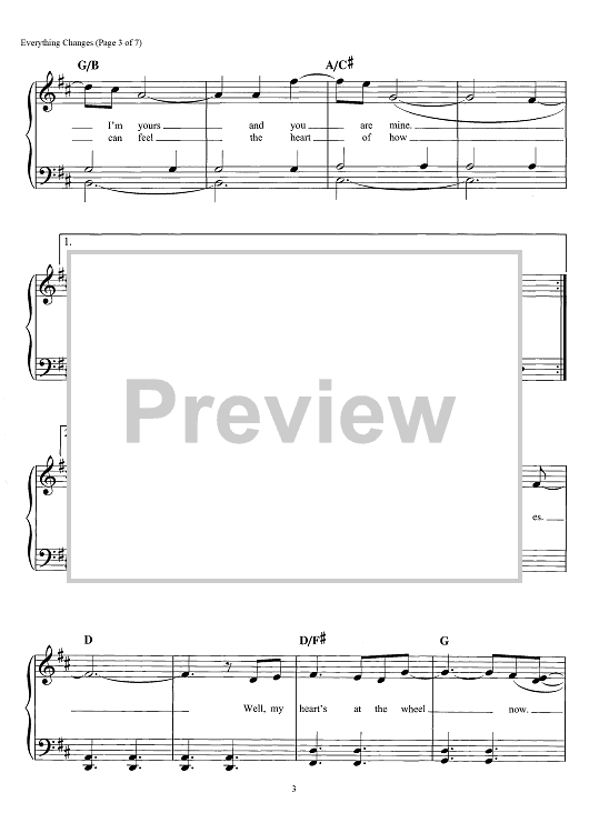 Digital Sheet Music for Everything Changes by Sara Bareilles scored for Easy Piano/Vocal/Chords; id:466535
