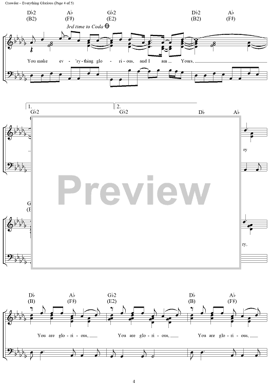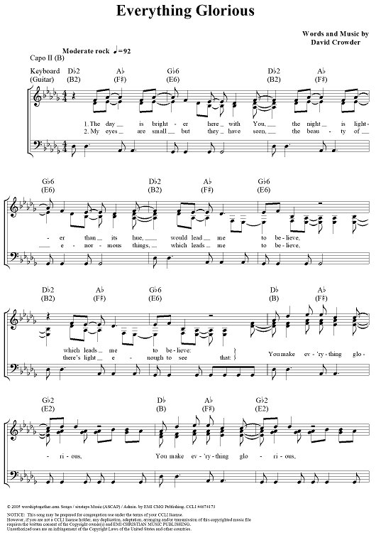 Digital Sheet Music for Everything Glorious by David Crowder, David Crowder Band scored for Piano/Vocal/Chords; id:319921