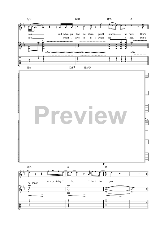 Digital Sheet Music for (Everything I Do) I Do It for You by Bryan Adams, Michael Kamen, Robert Lange scored for Guitar Tab; id:375736