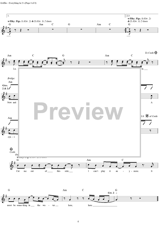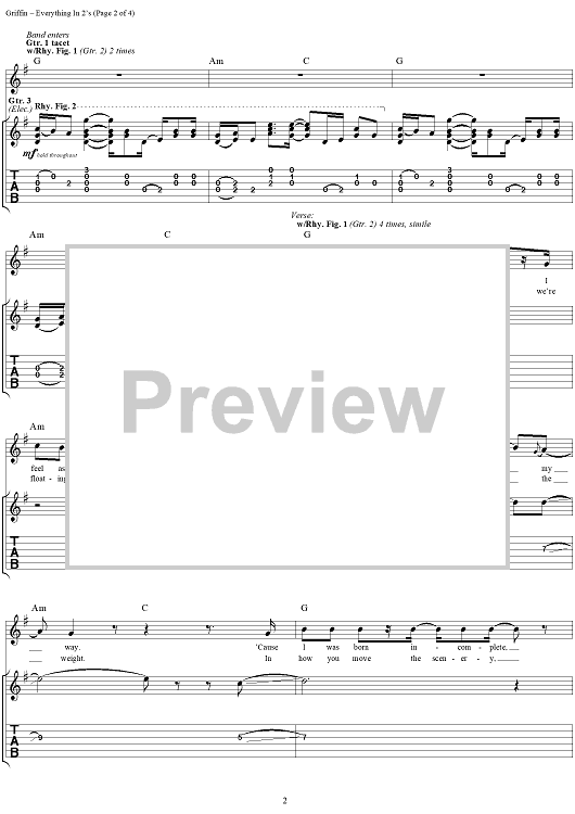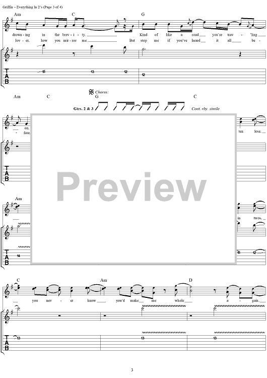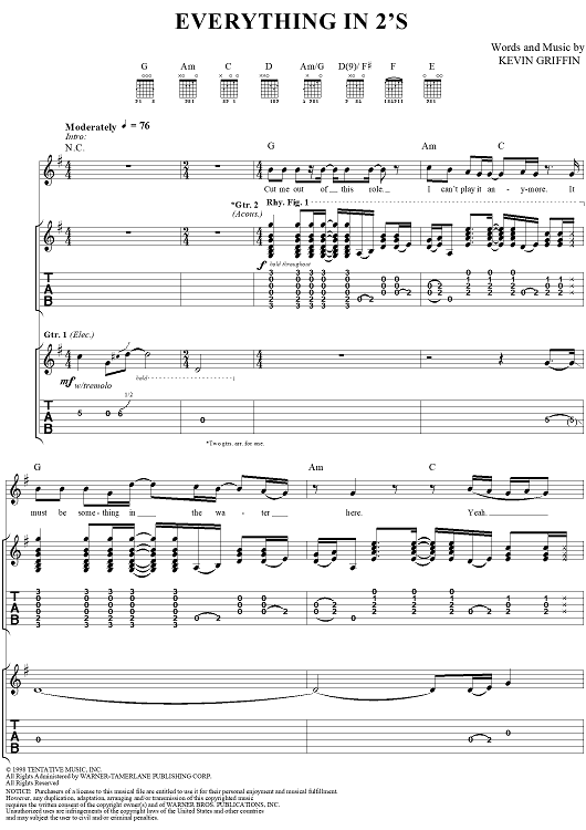 Digital Sheet Music for Everything in 2's by Better Than Ezra, Kevin Griffin scored for Guitar Tab/Vocal; id:113110