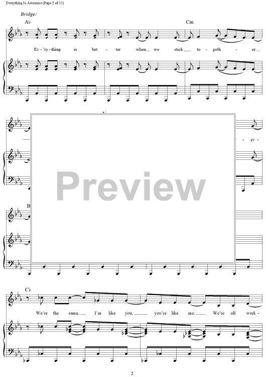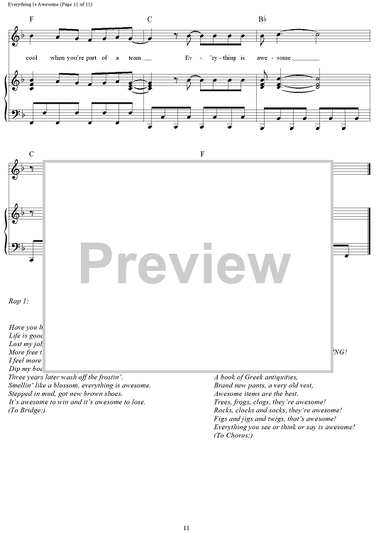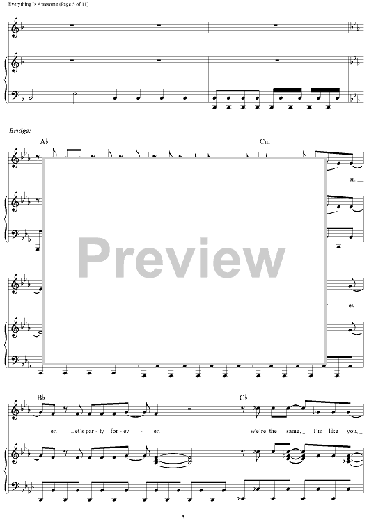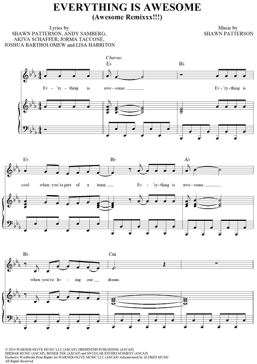 Digital Sheet Music for Everything Is Awesome (Awesome Remixxx!!!) by Shawn Patterson, Andy Samberg, Akiva Schaffer, Jorma Taccone, Joshua Barhtolomew, Lisa Harriton scored for Piano/Vocal/Chords; id:439646