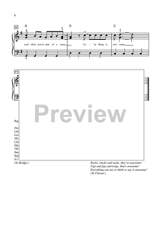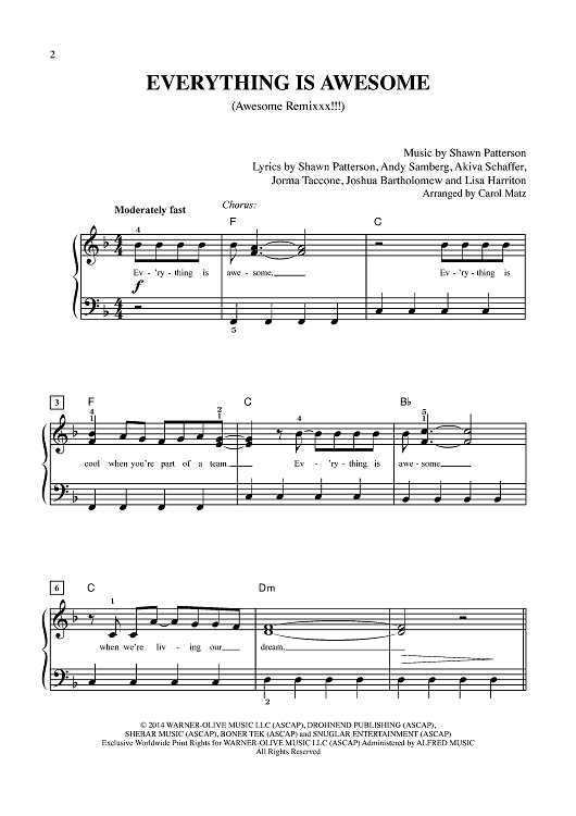 Digital Sheet Music for Everything Is Awesome (Awesome Remixxx!!!) by Carol Matz, Shawn Patterson, Andy Samberg, Akiva Schaffer, Jorma Taccone, Joshua Barhtolomew, Lisa Harriton scored for Big Note Piano; id:440113