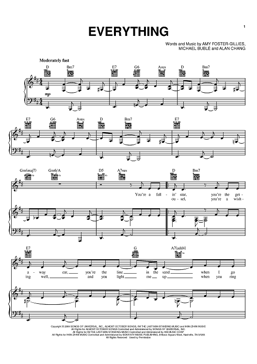 Digital Sheet Music for Everything by Michael Buble, Alan Chang, Amy S. Foster scored for Piano/Vocal/Chords; id:396978