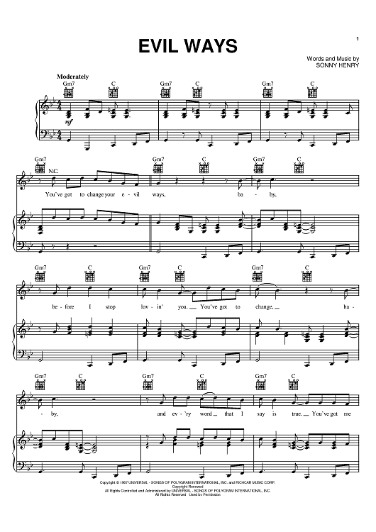 Digital Sheet Music for Evil Ways by Santana, Sonny Henry scored for Piano/Vocal/Chords; id:382255