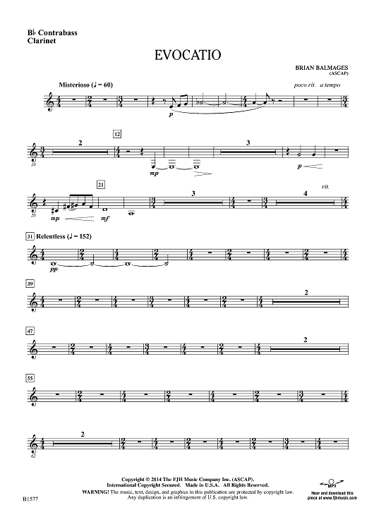 Digital Sheet Music for Evocatio - Bb Contrabass Clarinet by Brian Balmages scored for Concert Band; id:445629