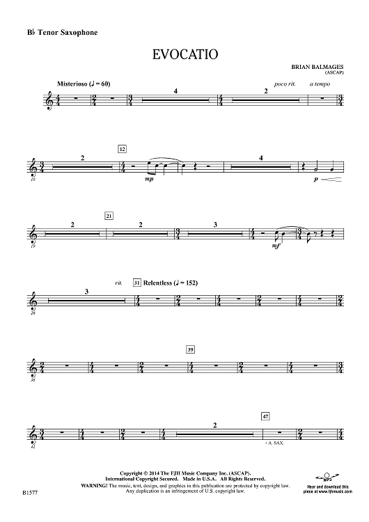 "Evocatio - Bb Tenor Sax" Sheet Music by Brian Balmages