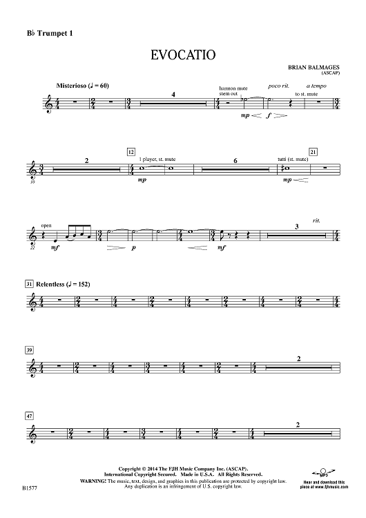 "Evocatio - Bb Trumpet 1" Sheet Music by Brian Balmages