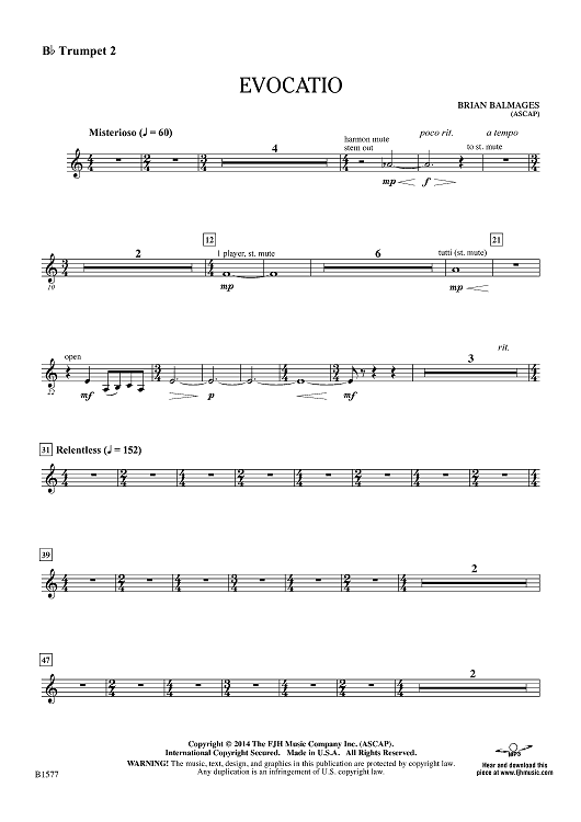 "Evocatio - Bb Trumpet 2" Sheet Music by Brian Balmages