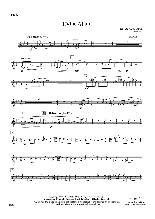 "Evocatio - Flute 1" Sheet Music by Brian Balmages