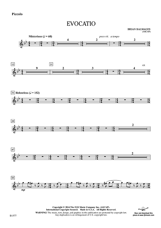 "Evocatio - Piccolo" Sheet Music by Brian Balmages