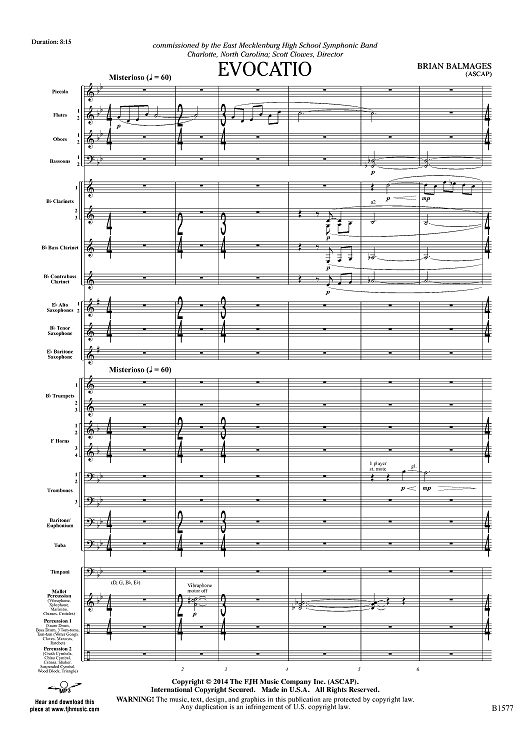 Digital Sheet Music for Evocatio - Score by Brian Balmages scored for Concert Band; id:445616