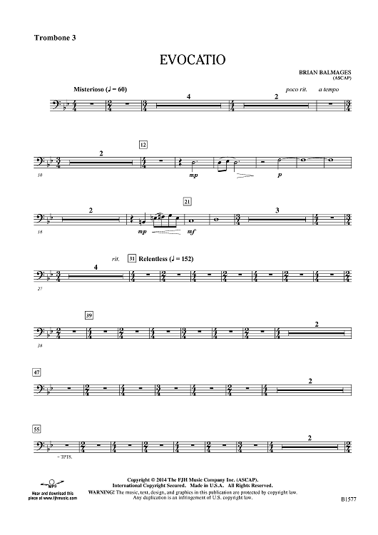 "Evocatio - Trombone 3" Sheet Music by Brian Balmages