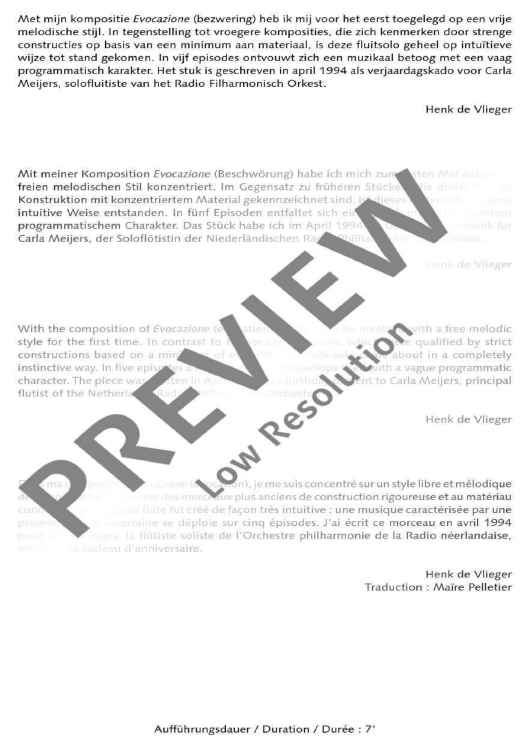 Digital Sheet Music for Evocazione by Henk de Vlieger scored for Flute; id:485873