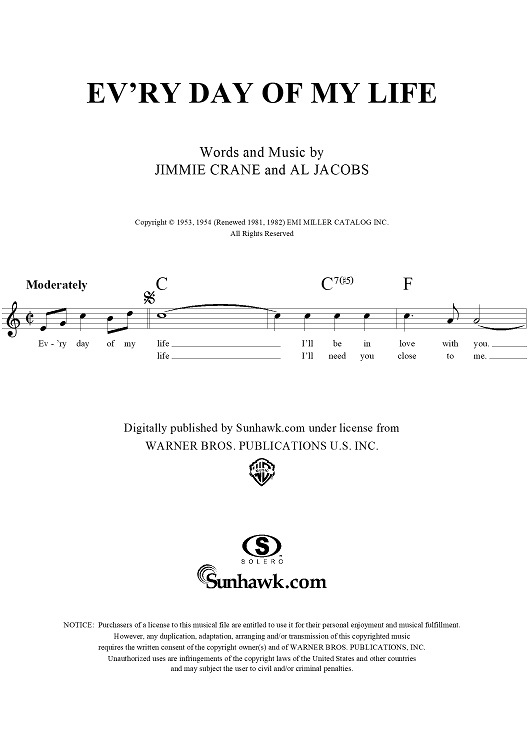 "Ev'ry Day of My Life" Sheet Music by Al Jacobs