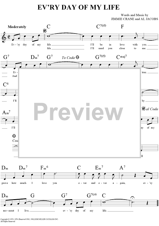 Digital Sheet Music for Ev'ry Day of My Life by Al Jacobs scored for Lead Sheet; id:271811