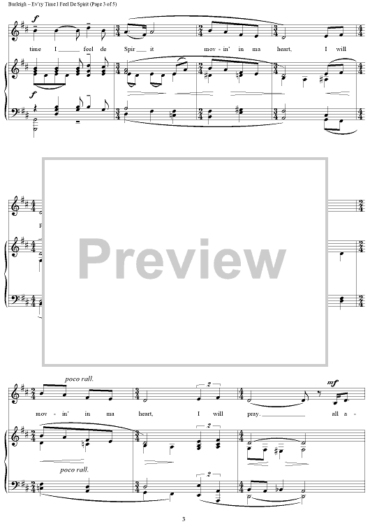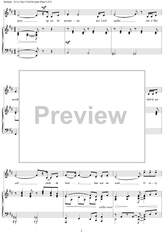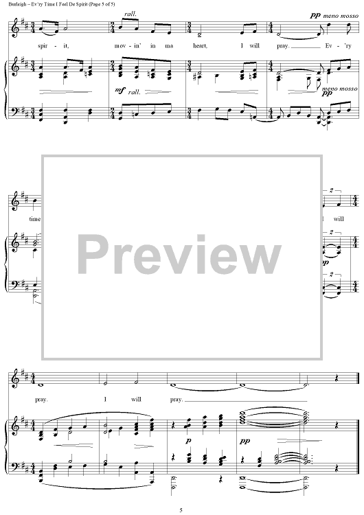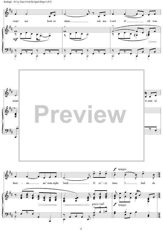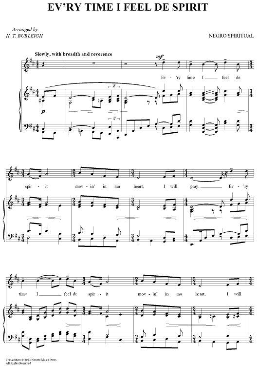 Digital Sheet Music for Ev'ry Time I Feel De Spirit by H. T. Burleigh, African American Spiritual scored for Piano/Vocal; id:433054