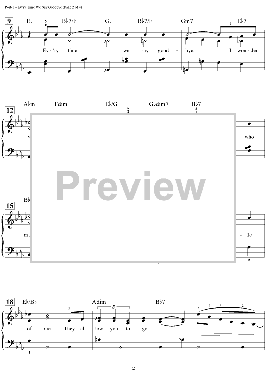 "Ev'ry Time We Say Goodbye" Sheet Music by Cole Porter