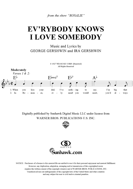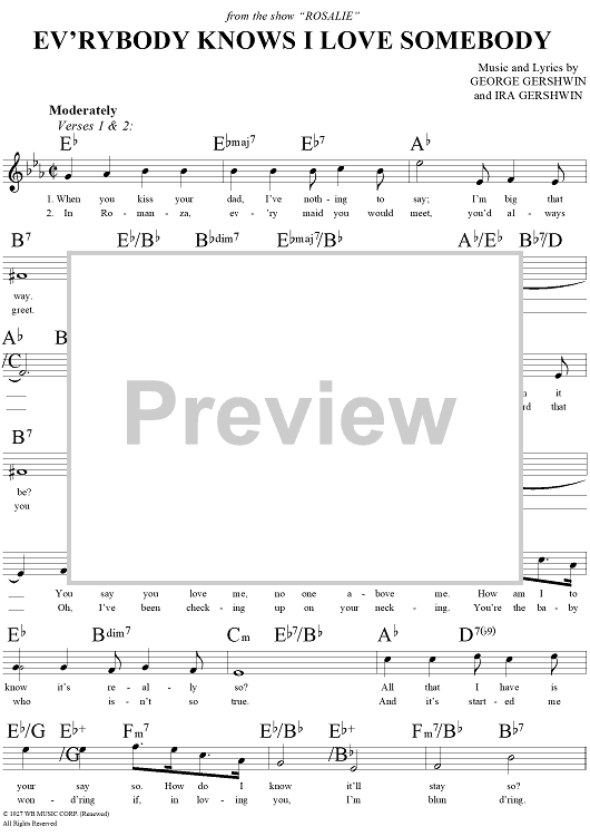 Digital Sheet Music for Ev'rybody Knows I Love Somebody by , George Gershwin, Ira Gershwin scored for Lead Sheet; id:283609