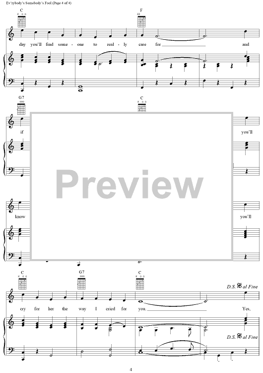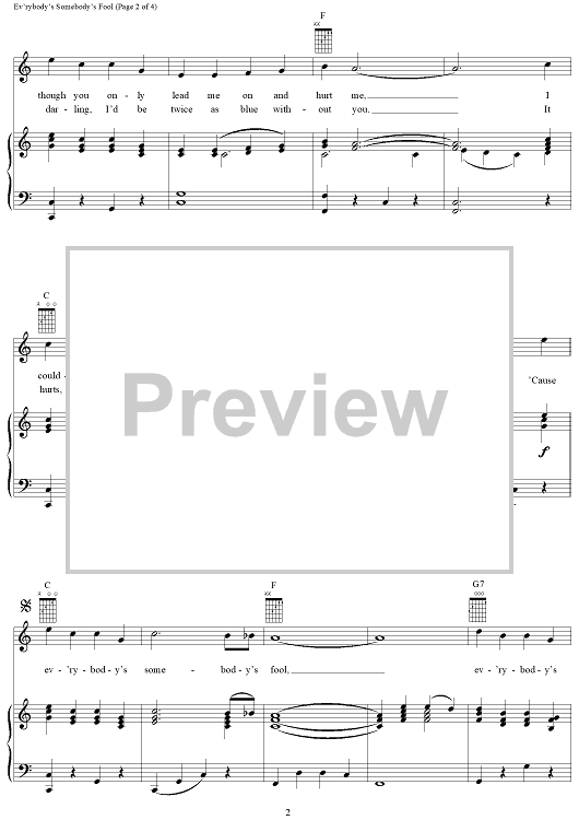 Digital Sheet Music for Ev'rybody's Somebody's Fool by Connie Francis, Howard Greenfield, Jack Keller scored for Piano/Vocal/Chords; id:120365