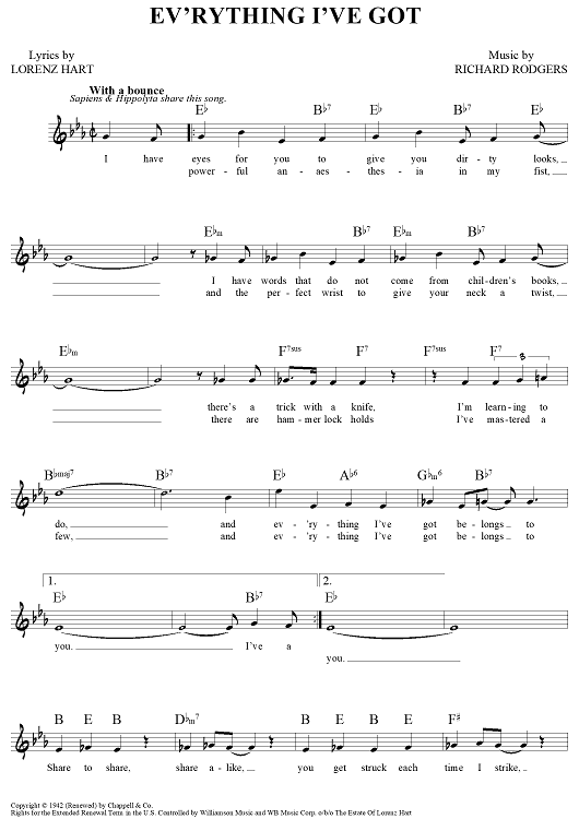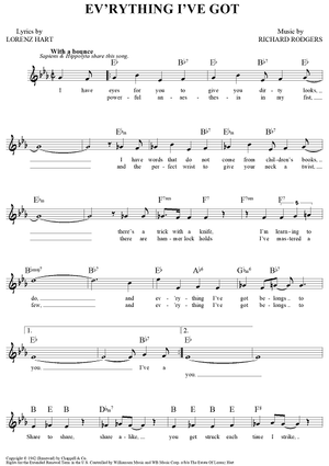 Digital Sheet Music for Ev'rything I've Got by Richard Rodgers, Lorenz Hart scored for Lead Sheet; id:441803