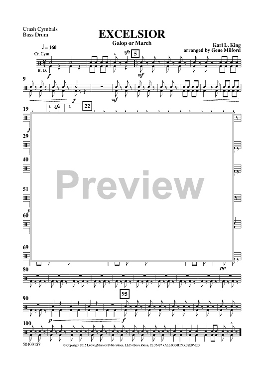 Digital Sheet Music for Excelsior - Bass Drum & Crash Cymbals by Gene Milford, Karl King scored for Concert Band; id:459178