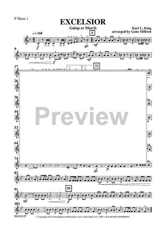Digital Sheet Music for Excelsior - Horn 1 in F by Gene Milford, Karl King scored for Concert Band; id:459166
