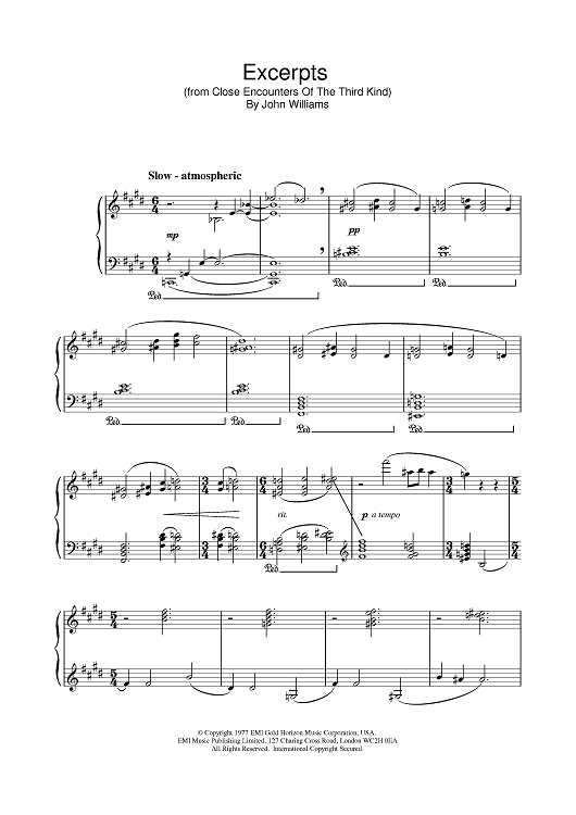Digital Sheet Music for Excerpts from Close Encounters Of The Third Kind by John Williams scored for Piano; id:380803