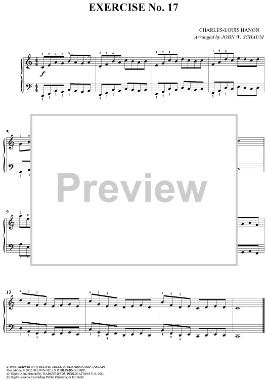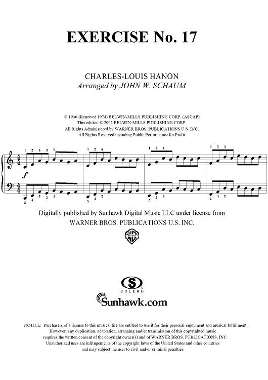 Digital Sheet Music for Exercise No. 17 by Charles-Louis Hanon, John W. Schaum scored for Piano Solo; id:287303